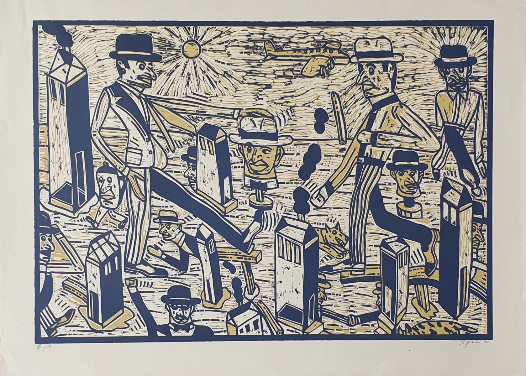 At the beginning of his career, influenced by artists like George Grosz or Otto Dix, he practiced an expressionist figuration from which emanated irony. Little by little, his representation evolved towards the absurd, building a kind of theater on the stage of which a man in motion frolic, seeking his place in the world.