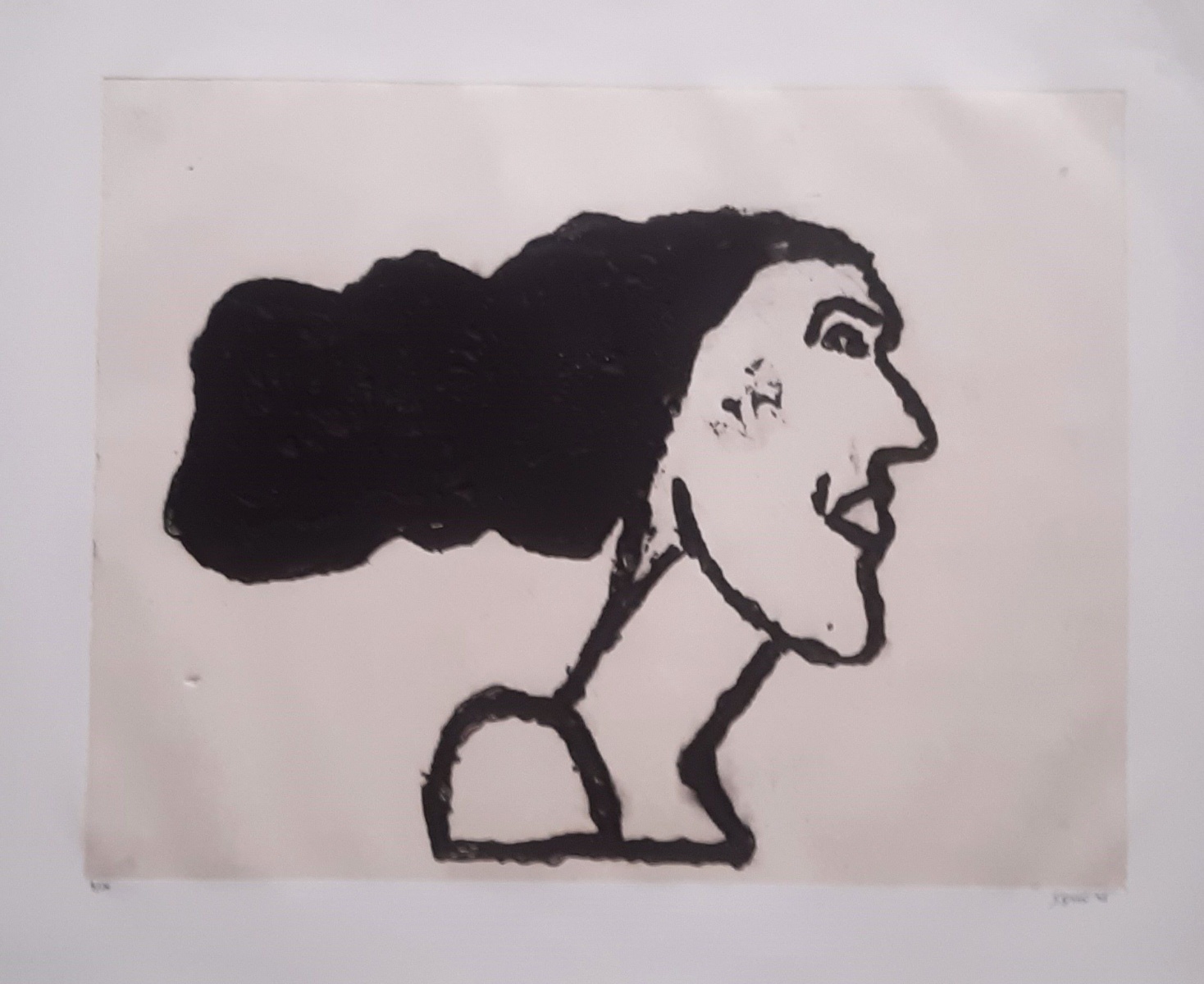 At the beginning of his career, influenced by artists like George Grosz or Otto Dix, he practiced an expressionist figuration from which emanated irony. Little by little, his representation evolved towards the absurd, building a kind of theater on the stage of which a man in motion frolic, seeking his place in the world.