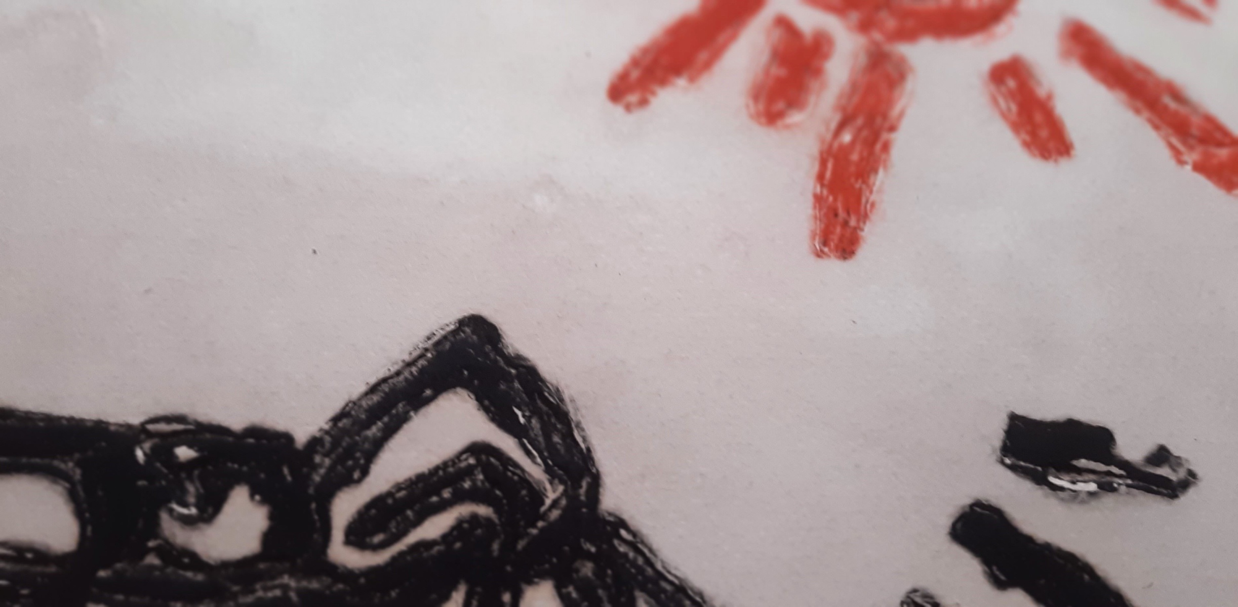 Using charcoal, pastel, pencil or feather, he brings to life against a background of urban agitation, a colorful and graphic world that seems to emerge from the world of comics.