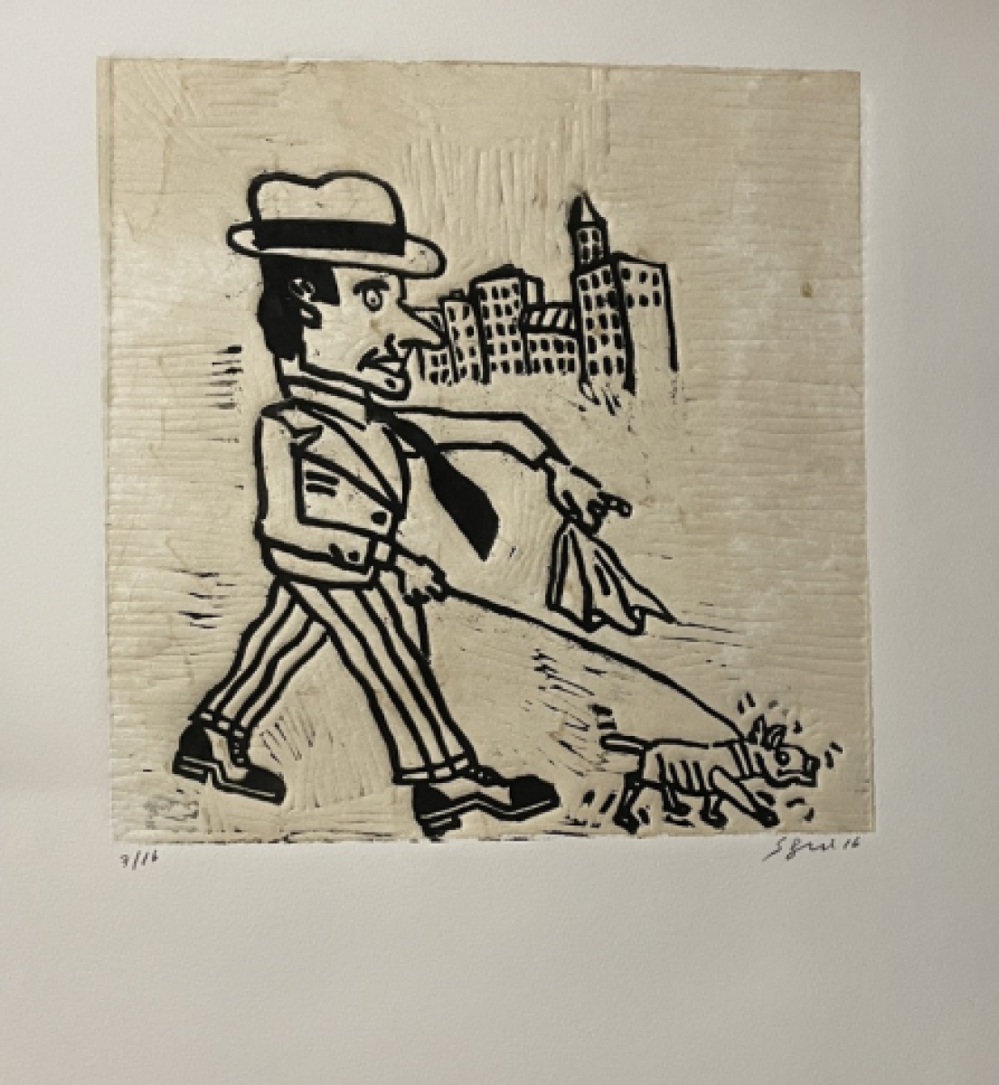 Utilisant le fusain, le pastel, le crayon ou la plume, il fait vivre sur un fond d'agitation urbaine, un monde coloré et graphique qui semble surgir de l'univers de la bande dessinée.