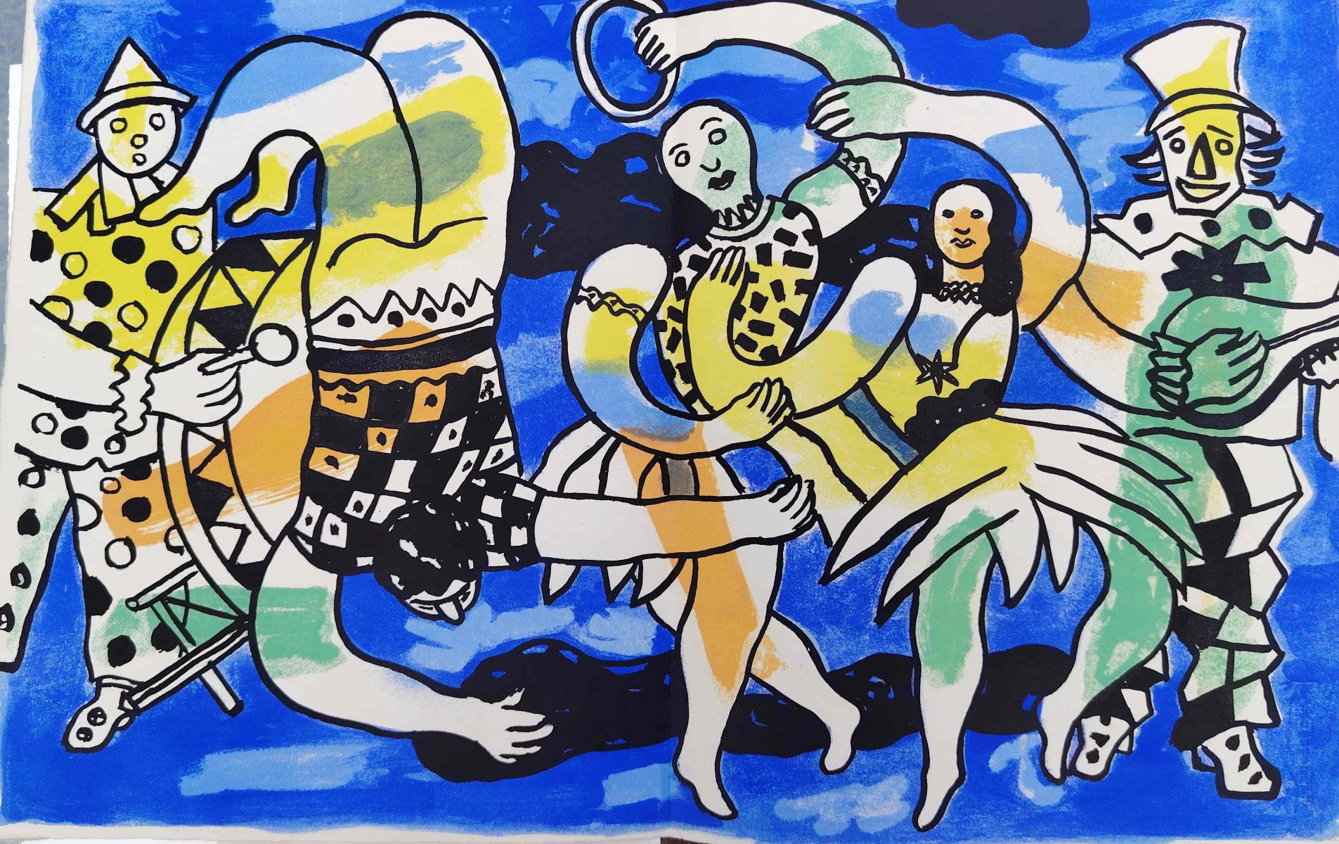 10 planches en parfait état extraites du coffret "Le Cirque", entièrement réalisé par l'artiste, texte, lithos noires et couleurs. et entièrement réalisé en lithographie !