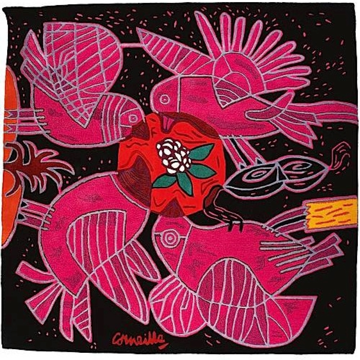Sa première exposition individuelle en 1946, à Groningue, le montre déjà sensible aux aplats de Dufy, Matisse et Modigliani, puis il expose au Stedelijk Museum d’Amsterdam en 1947 et, en même temps qu’Appel, à la Gildehuys d’Amsterdam. Grâce à l’heureuse rencontre d’une dame hongroise, il se rend à Budapest, débutant ainsi sa destinée de nomade. Si le surnom de “géologue ailé” que lui donna Christian Dotremont était une image poétique, la vocation internationale de Corneille, comme celle de ses amis, était aussi une claire réaction au nationalisme des années hitlériennes. Cette première étape à Budapest, où l’attire l’entrelacs graphiques et éperdu des ruines et des herbes, est fondamentale pour l’approfondissement de sa poétique de libre recherche. Dans la librairie d’ Imre Pan, frère du surréaliste Arpad Mezei, il lit les poètes français, de Rimbaud aux surréalistes, et découvre la peinture de Miro et de Klee. Celui-ci semble parler plus que tout autre à l’âme du jeune Corneille. Les conquêtes que Klee accomplira sur le plan de la couleur, lors de son voyage à Tunis, nous rappellent celles de Corneille quand il se rendra à son tour en Tunisie en 1948 et en 1949. A Budapest, Corneille rencontre aussi le peintre français Jacques Doucet qui lui dévoilera le monde suffocant et triste des graffitis de prison.