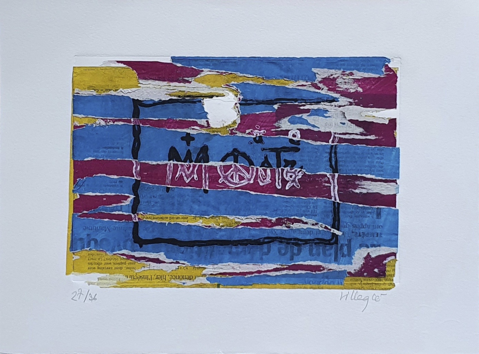 À partir de décembre 1949, avec Raymond Hains, Villeglé ramasse des affiches lacérées. Leur première affiche, « Ach Alma Manétro », est une œuvre commune. Depuis 1957, l'œuvre sélective de l'artiste a donné lieu à plus de 140 expositions personnelles en Europe et en Amérique. En 1958, Villeglé rédige une mise au point sur les affiches lacérées intitulée « Des Réalités collectives ». C'est la préfiguration du manifeste du Nouveau réalisme. Puis, il crée l'entité Lacéré Anonyme en 1959. A partir de 1969, il imagine un « alphabet socio-politique » en hommage à Serge Tchakhotine.