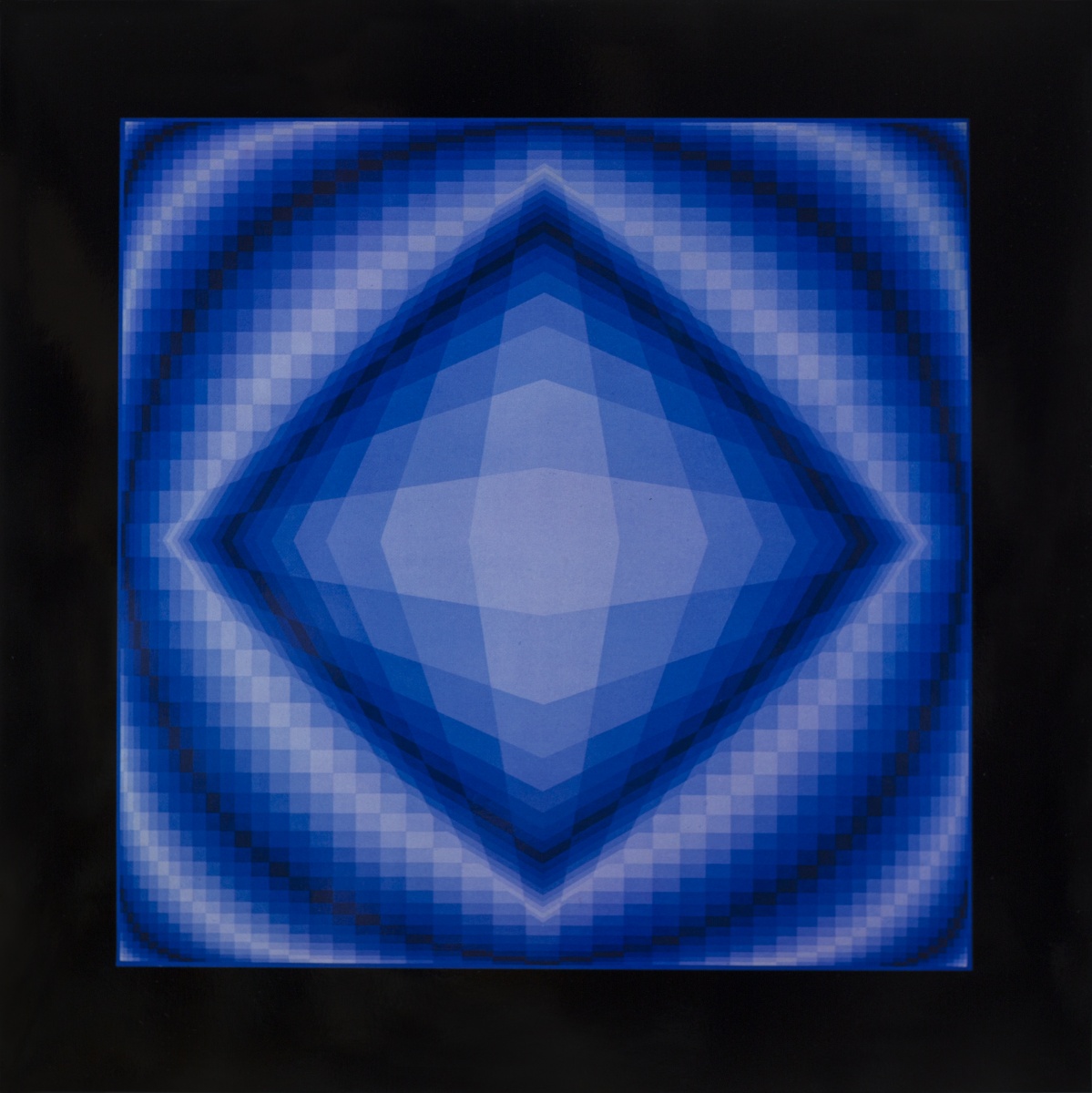 Victor Vasarely est un artiste franco-hongrois considéré comme étant à l’origine du mouvement Op Art ou art optique, que Bridget Riley et Yaacov Agam vont rejoindre. Les peintures et sculptures de Vasarely utilise des formes géométriques et des graphismes colorés pour créer des illusions de profondeur spatiale sur des surfaces à deux dimensions. Cette méthode abstraite de peinture, aussi connue sous le nom d’art cinétique, emprunte aux principes du Bauhaus, de Wassily Kandinsky et du constructivisme, ce qui aura un grand impact sur son travail. Né Vásárhelyi Gyozo le 9 avril 1906 à Pécs en Hongrie, l’artiste étudie d’abord la médecine, puis se tourne vers la peinture deux ans plus tard. Vasarely fréquente la branche hongroise du Bauhaus (Muhely) à Budapest à la fin des années 1920. Après s’être installé à Paris en 1930, Vasarely travaille en tant qu’artiste graphique et développe sa pratique de l’art abstrait géométrique. Il vit et travaille à Paris jusqu’à sa mort à l’âge de 90 ans le 15 mars 1997.