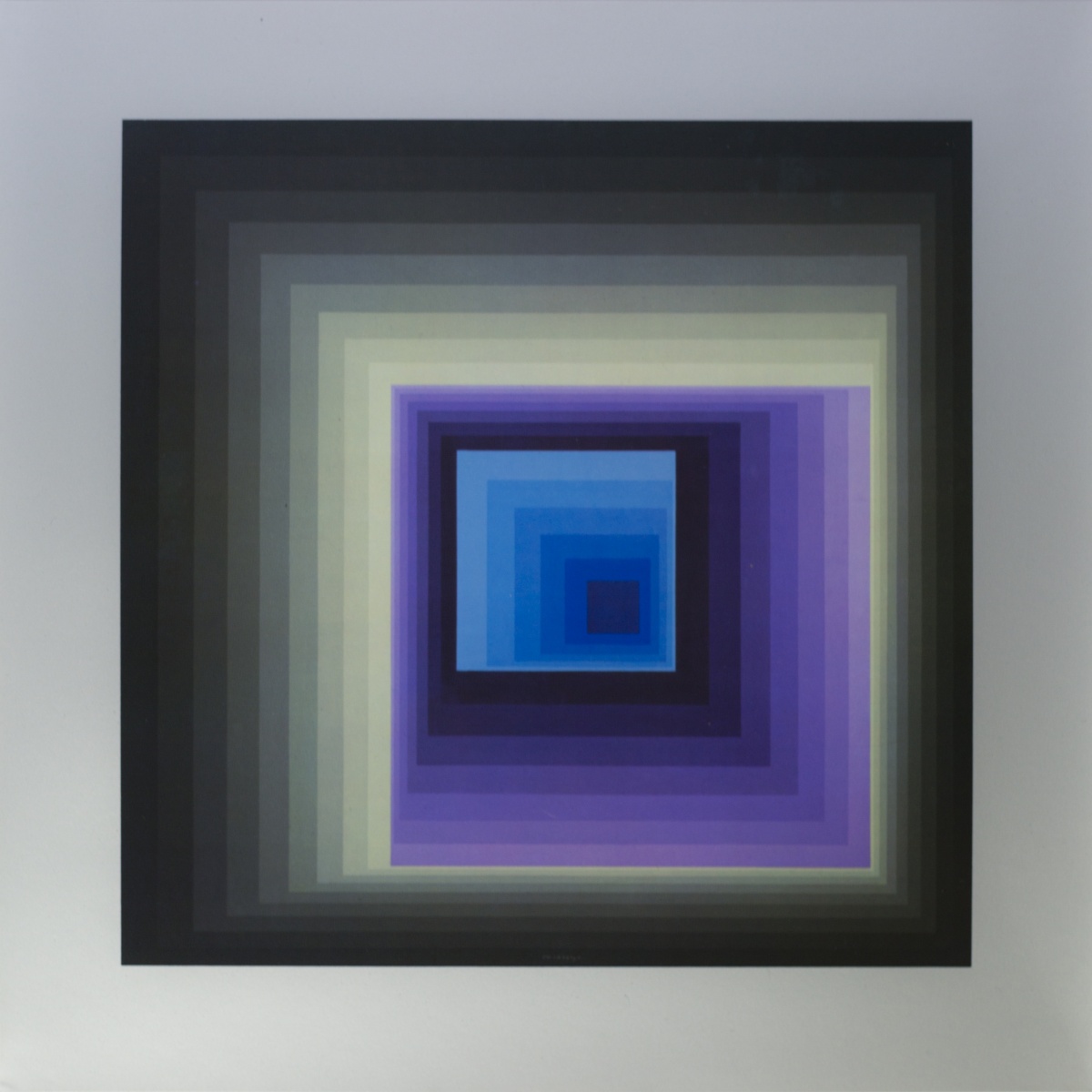 Victor Vasarely est un artiste franco-hongrois considéré comme étant à l’origine du mouvement Op Art ou art optique, que Bridget Riley et Yaacov Agam vont rejoindre. Les peintures et sculptures de Vasarely utilise des formes géométriques et des graphismes colorés pour créer des illusions de profondeur spatiale sur des surfaces à deux dimensions. Cette méthode abstraite de peinture, aussi connue sous le nom d’art cinétique, emprunte aux principes du Bauhaus, de Wassily Kandinsky et du constructivisme, ce qui aura un grand impact sur son travail. Né Vásárhelyi Gyozo le 9 avril 1906 à Pécs en Hongrie, l’artiste étudie d’abord la médecine, puis se tourne vers la peinture deux ans plus tard. Vasarely fréquente la branche hongroise du Bauhaus (Muhely) à Budapest à la fin des années 1920. Après s’être installé à Paris en 1930, Vasarely travaille en tant qu’artiste graphique et développe sa pratique de l’art abstrait géométrique. Il vit et travaille à Paris jusqu’à sa mort à l’âge de 90 ans le 15 mars 1997.